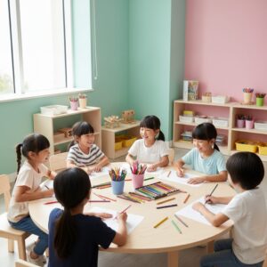 Tạo môi trường học tập thân thiện, đầy màu sắc: Không gian học tập sáng tạo, nhiều hình ảnh và đồ dùng kích thích trí tò mò của bé.
